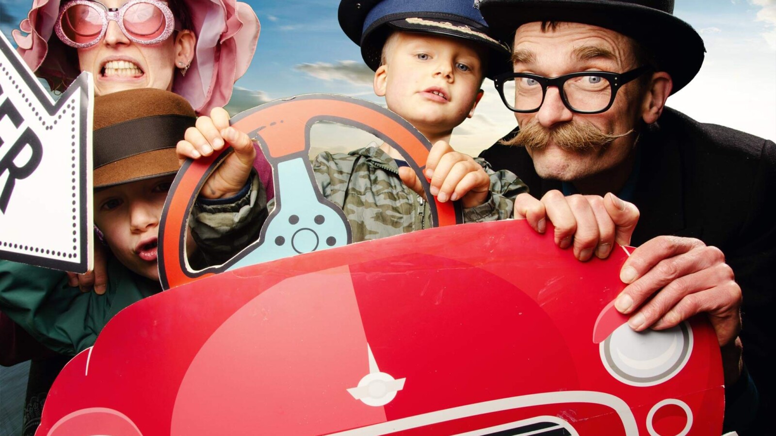 Op de foto met een gek hoedje, maffe bril en een uniek bordje voor een te gekke achtergrond. Absolutely Fabulous
